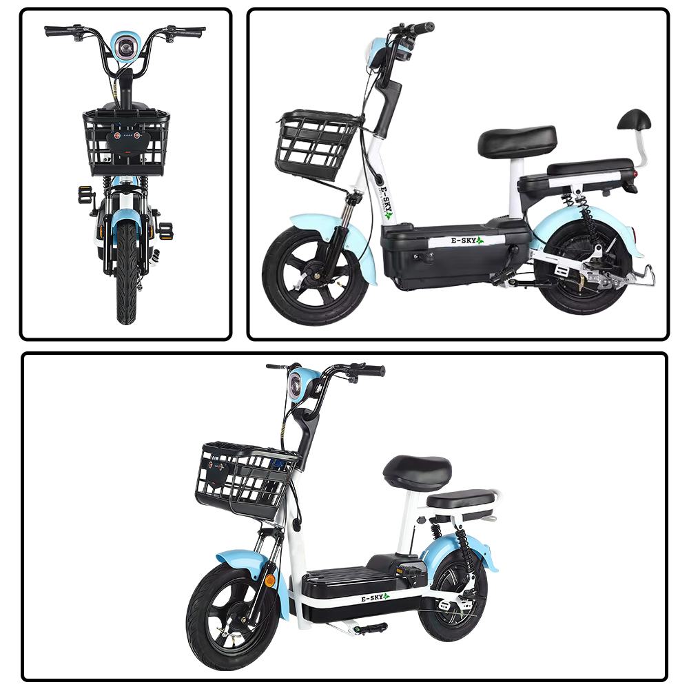 The EBB Compact Electric Bike Scooter is a lightweight and portable mobility masterpiece tailored for urban commuting, independently developed by Linyi E-sky New Energy Equipment Co., Ltd.—a leading wholesale compact electric scooter manufacturer in China focusing on market. This model is equipped with a 350W high-efficiency brushless motor, matching 48V12AH lead-acid/lithium dual battery options, with a maximum range of 40-45km for lithium battery version, perfectly adapting to urban short-distance commuting (5-20km) scenarios such as office workers, campus mobility and community travel. With a compact body design, 35-38km/h top speed and 20° climbing capability, it easily passes through crowded city roads and narrow bike lanes, while the integrated front basket and anti-theft design meet daily practical needs. As a cost-effective product, it features low unit price, easy maintenance and high durability, making it an ideal choice for distributors, campus operators and community service providers.